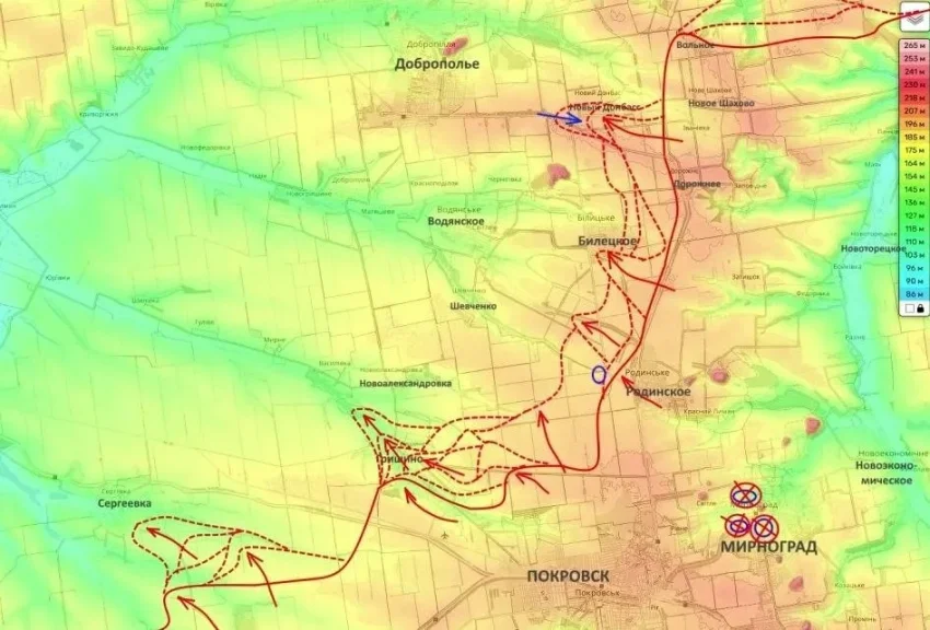 С одной стороны - группы, которые идут от Гришино и пытаются зайти в тыл украинской группировке. С другой - давление с линии Нового Донбасса и Белицкого. Если эти направления сомкнутся, ситуация для ВСУ может резко ухудшиться.