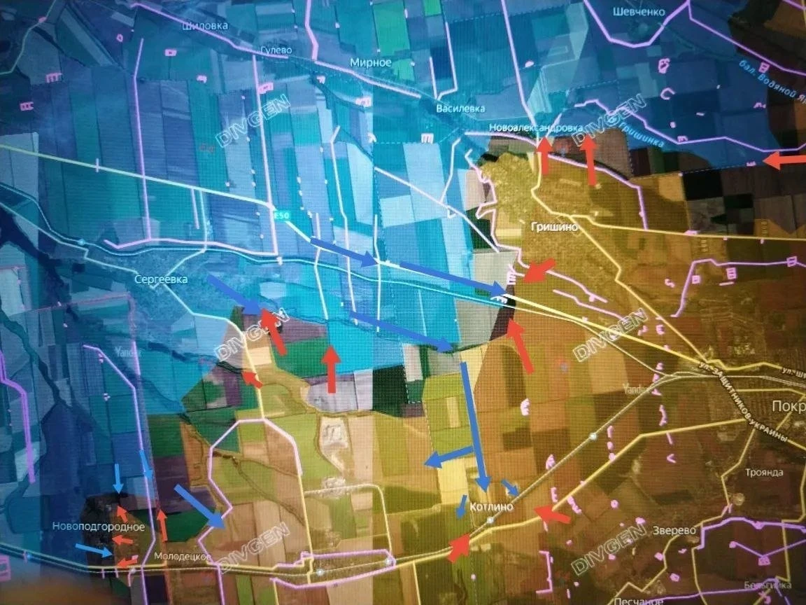 Российские подразделения, в свою очередь, расширяют контроль севернее Гришино и продвигаются к Новоалександровке. Одновременно удалось выровнять линию фронта вдоль железнодорожной ветки от Родинского до Ивановки. В Белицком продолжается системное давление с применением артиллерии и беспилотников. Бои за Новый Донбасс не прекращаются.