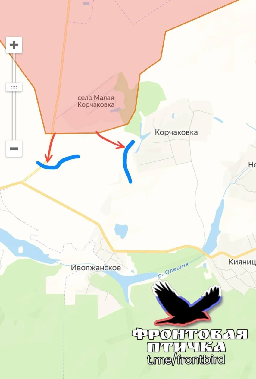 На Сумском направлении российские войска продолжают взламывать оборону противника к югу от Юнаковки - Алексеевки. Наши подразделения расширили зону контроля вдоль границы, заняв позиции на территории международного автомобильного пункта пропуска Бачевск. Зафиксировано небольшое продвижение вдоль границы у села Сопыч. У Юнаковки продолжаются ожесточённые бои за лесные массивы у Садков.