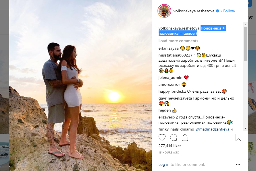 Так, буквально сегодня девушка опубликовала снимок, где она и Тимати позируют на фоне заката, а руки молодых людей сложены на животе у Анастасии. Вроде бы и ничего такого, но пост гласит: «Половинка + половинка = целое )». Из этого подписчики сделали далеко идущие выводы о том, что Анастасия Решетова ожидает прибавления: