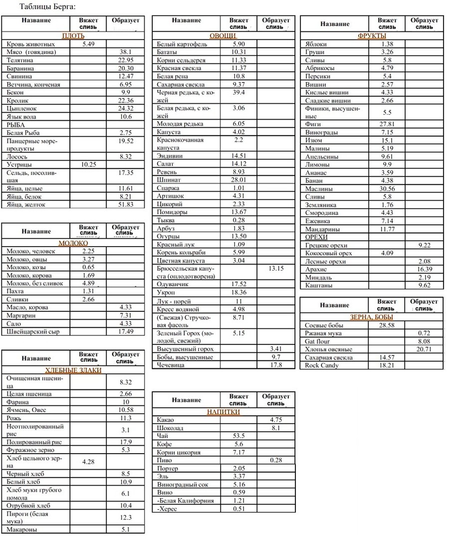 Безусловно, есть природные препараты, существенно ускоряющие растворение мочекислых солей и выведение их из организма, чтобы быстро очистить суставы, ткани и органы. Но это уже совсем другая тема. Стоит начать пить норму чистой воды, убрав любые другие напитки на время очищения, и эти симптомы уходят, слизи постепенно растворяются и выводятся. Конечно, очень важно убрать сам источник накопления в организме мочекислых солей. Список слизеобразующих продуктов приводится ниже. В данном случае это таблица Берга: