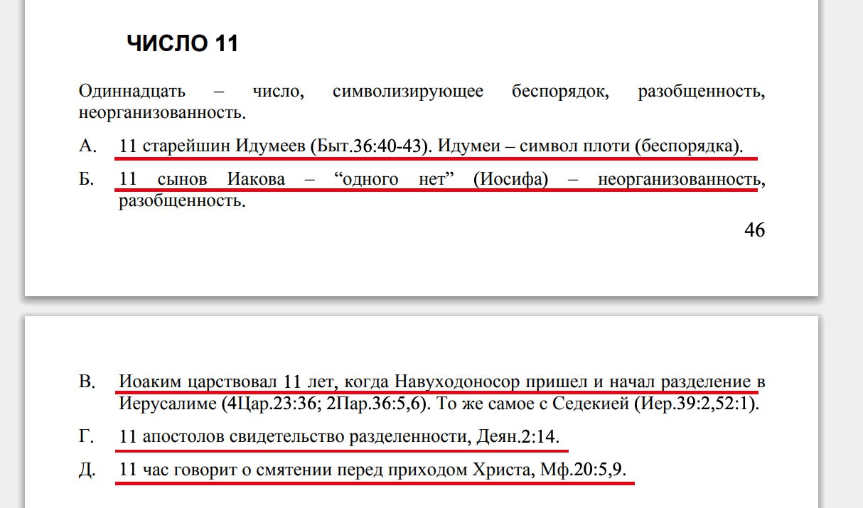 Согласно книге «The Miraculous Significance of NUMBERS and COLOURS as they appear IN THE HOLY SCRIPTURES M.D. Stewart» (Удивительное значение Чисел и Цветов в текстах Священных Писаний М.Д. Стюарт) Чило 11 — число, символизирующее беспорядок, разобщенность, неорганизованность.