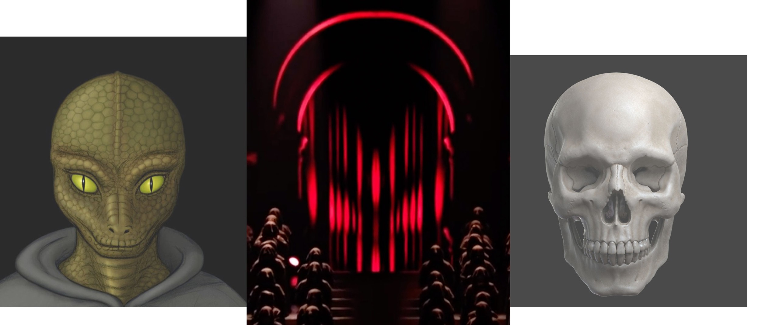 Вы видите череп или же голову рептилии по середине сцены? Это вроде очевидно. Нет? Хотя, может у меня просто фантазия разыгралась.