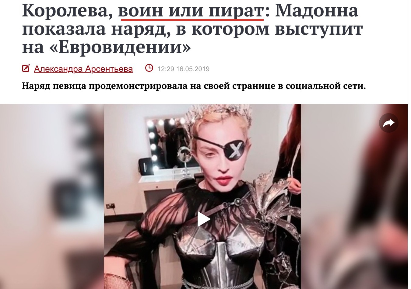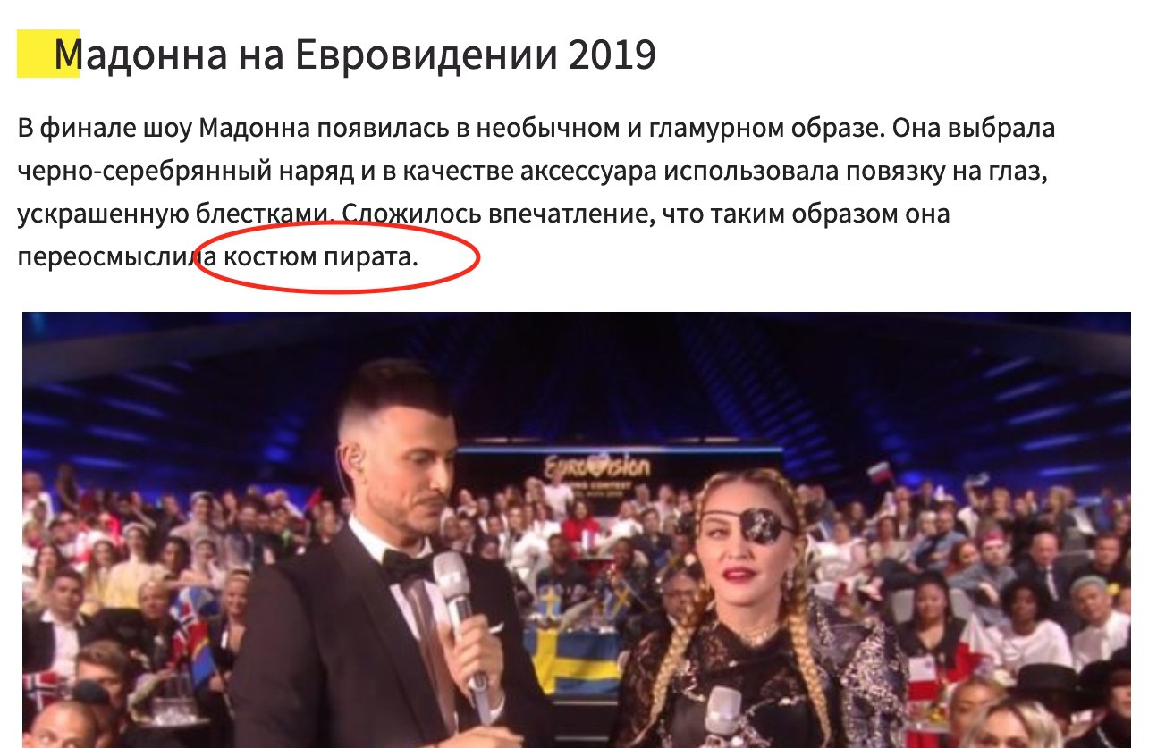 1) что СМИ писало о наряде Мадонны на кануне её выступления на Евровидении 2019;