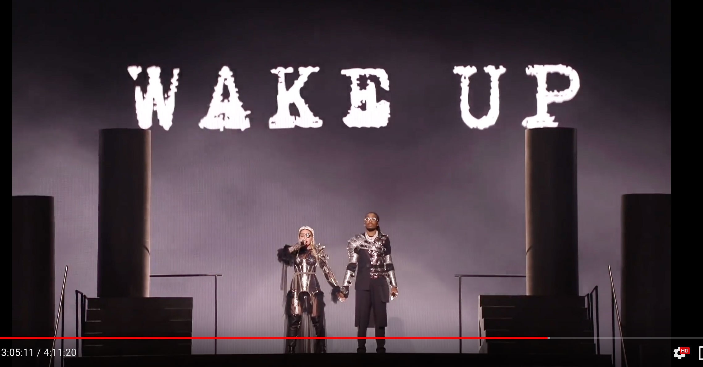 И скорее всего это не просто выступление, а послание для тех кто «в теме». Если уж Мадонна со всей её «любовью к Сатане» говорит в выступлении «Проснитесь», то может и вправду пора открыть глаза в прямом смысле слова и посмотреть что происходит вокруг нас. Не спите.