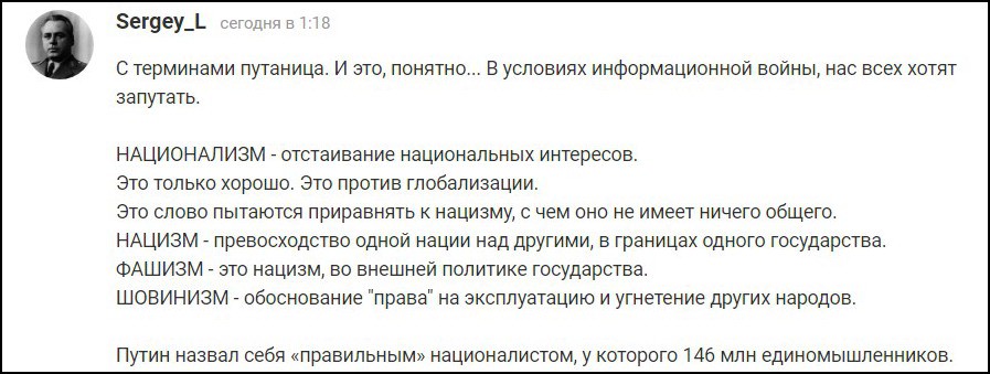 — Все знают: голова нам дана, для того чтобы думать. Но, к сожалению, огромное количество людей неправильно ею пользуются, не задумываясь о том, что сегодня происходит.