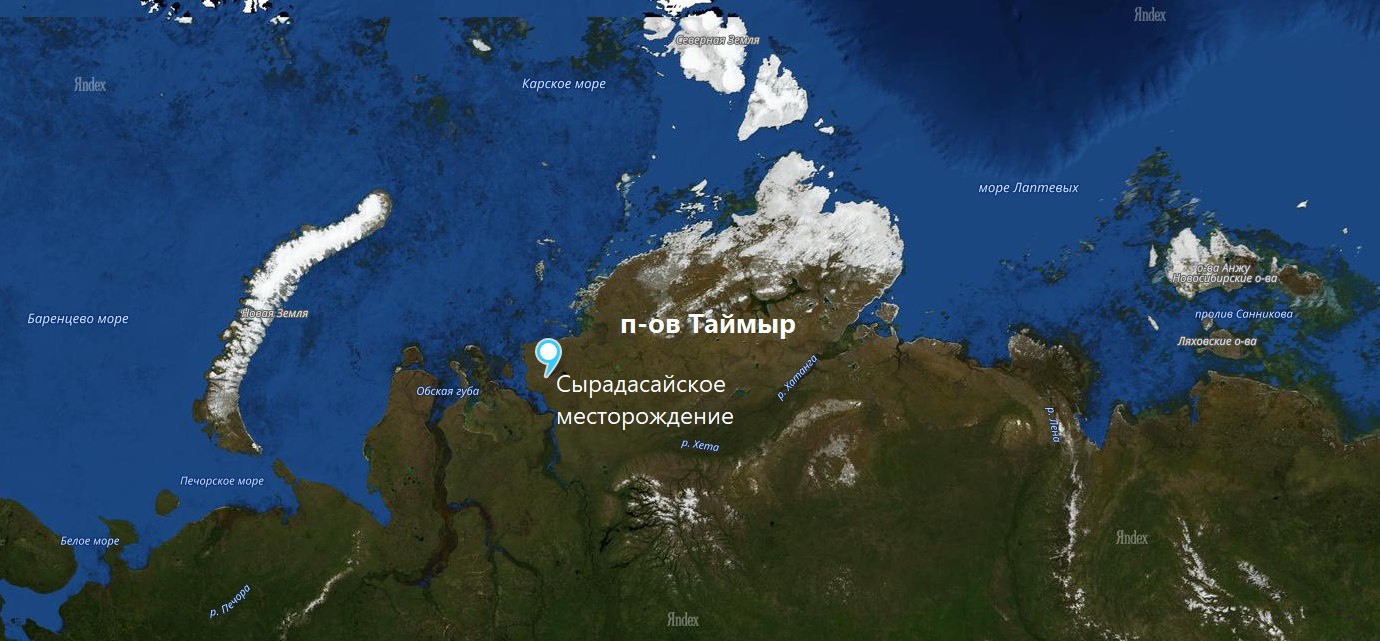 «Месторождение Сырадасайское, уголь каменный. Данные о районе объекта: расположено в 55 км от судоходного Енисейского залива и в 105 км от морского порта Диксон к югу от него.