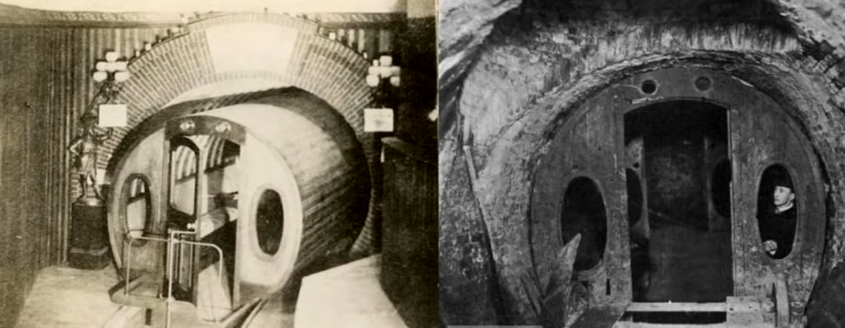 В 1868 году компания "Пневмотранзит" во главе с изобретателем Альфредом Бичем начинает строить подземный тоннель для пневматических поездов.