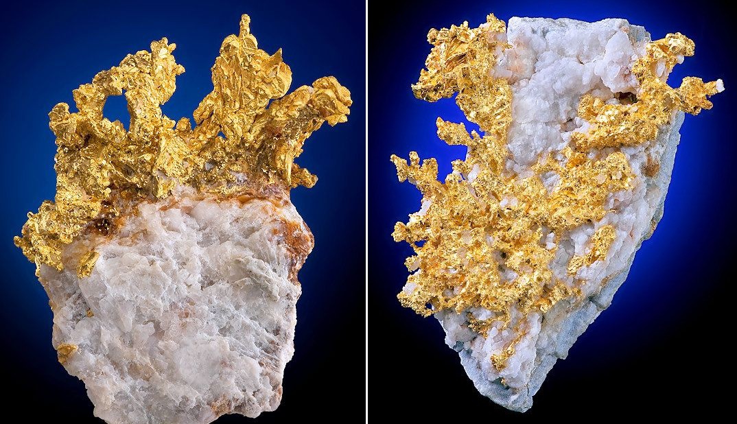 Вернемся к золоту. Такая картина с ростом золотой жилы, имитирующая ветвь растения – есть рост кристаллов и может происходить либо из расплава, либо из раствора. Я сторонник версии второго. Такое же объяснение и с образованием кристаллов диоксида кремния в граните – из перегретого раствора (бульона) при давлении или при изменении каких-то показателей.