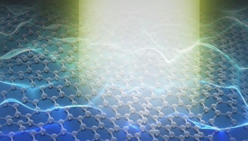 Схематическое представление локальных колебаний решетки в графене, возбуждаемых волновым фронтом прошедших быстрых электронов. (Изображение предоставлено: © Ryosuke Senga, AIST)