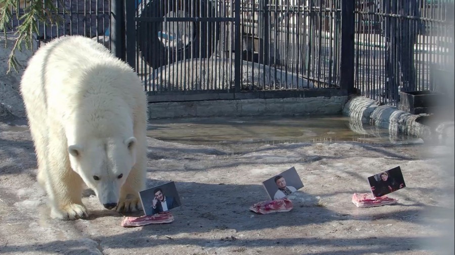 Однако работники зоопарка решили на этом не останавливаться и предоставить право предсказания белой медведице по кличке Аврора. Специально для нее даже подобрали другое лакомство – аппетитное мясо с салом. Его разделили на 3 кусочка, в каждый из которых вставили флажки с изображениями кандидатов в президенты Украины. Сначала Аврора обошла и обнюхала каждый кусок мяса, после чего ушла. Но через некоторое время медведица все же вернулась и сразу направилась к лакомству с изображением портрета Владимира Зеленского.