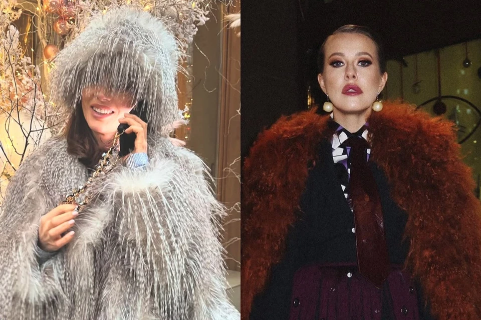 Наряжаемся в меха: Чехова — в шапке-«абажуре» и шубе под страуса, Собчак — в рыжей ламе