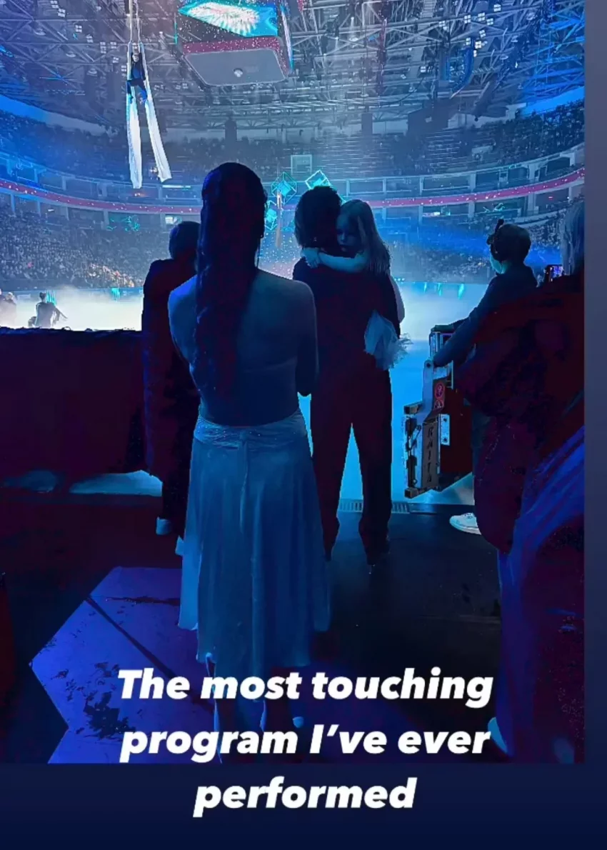 Наоми, с которой фигурист катался во время работы в США, поделилась в своих соцсетях видео с проката. Она написала, что ещё никогда не выступала с такой трогательной программой.
