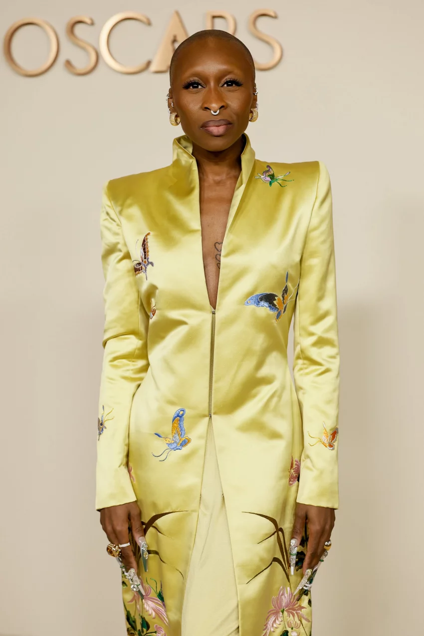 Деми Мур/Фото: Frazer Harrison/Getty ImagesАриана Гранде/Фото: Frazer Harrison/Getty ImagesЗои Салдана/Фото: Frazer Harrison/Getty ImagesТимоти Шаламе/Фото: Frazer Harrison/Getty ImagesСинтия Эриво/Фото: Frazer Harrison/Getty Images62-летняя Деми Мур появилась в белом костюме от Нины Риччи. Зои Салдана выбрала для мероприятия бордовое платье со свободными пышными рукавами. Синтия Эриво появилась в жёлтом платье в пол с вышивкой бабочек и цветов. Звезда "Аноры" Майки Мэдисон пришла в тёмно-синем платье без бретелек.