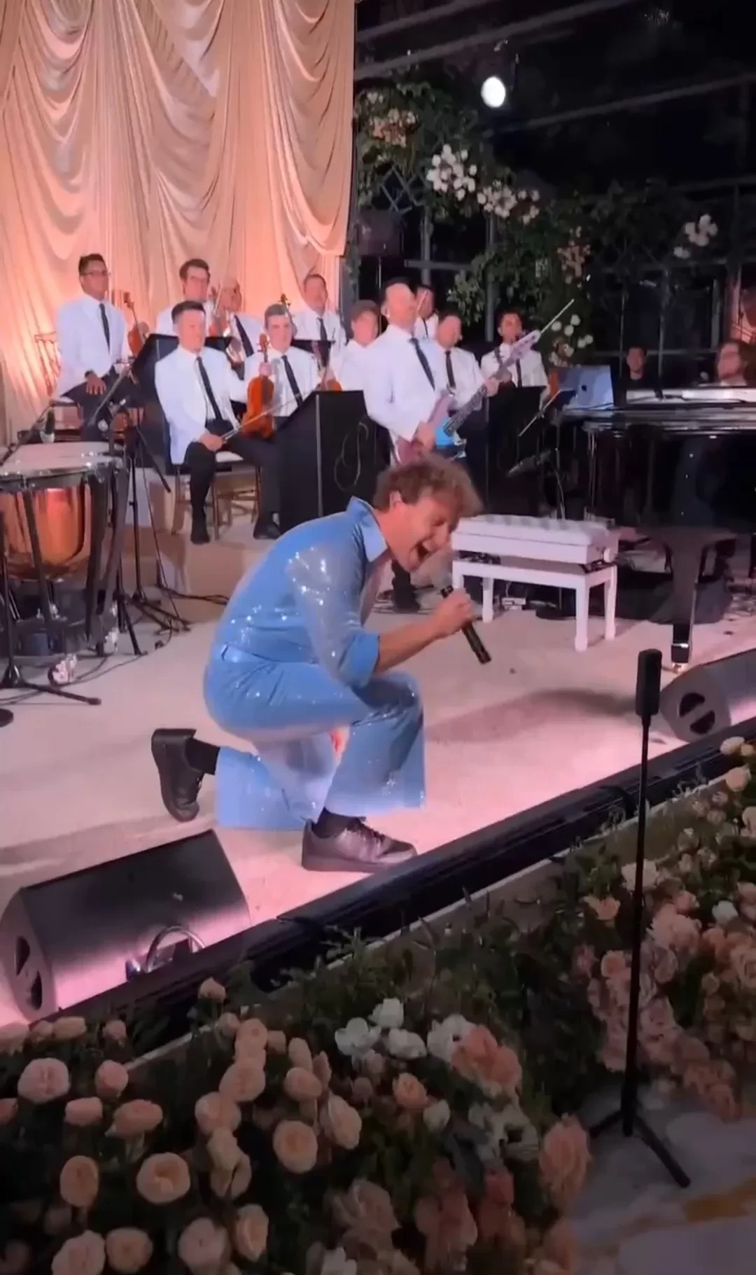 Голубое трико в блестках: Марк Цукерберг повторил вирусный номер Бенсона Буна на юбилее жены