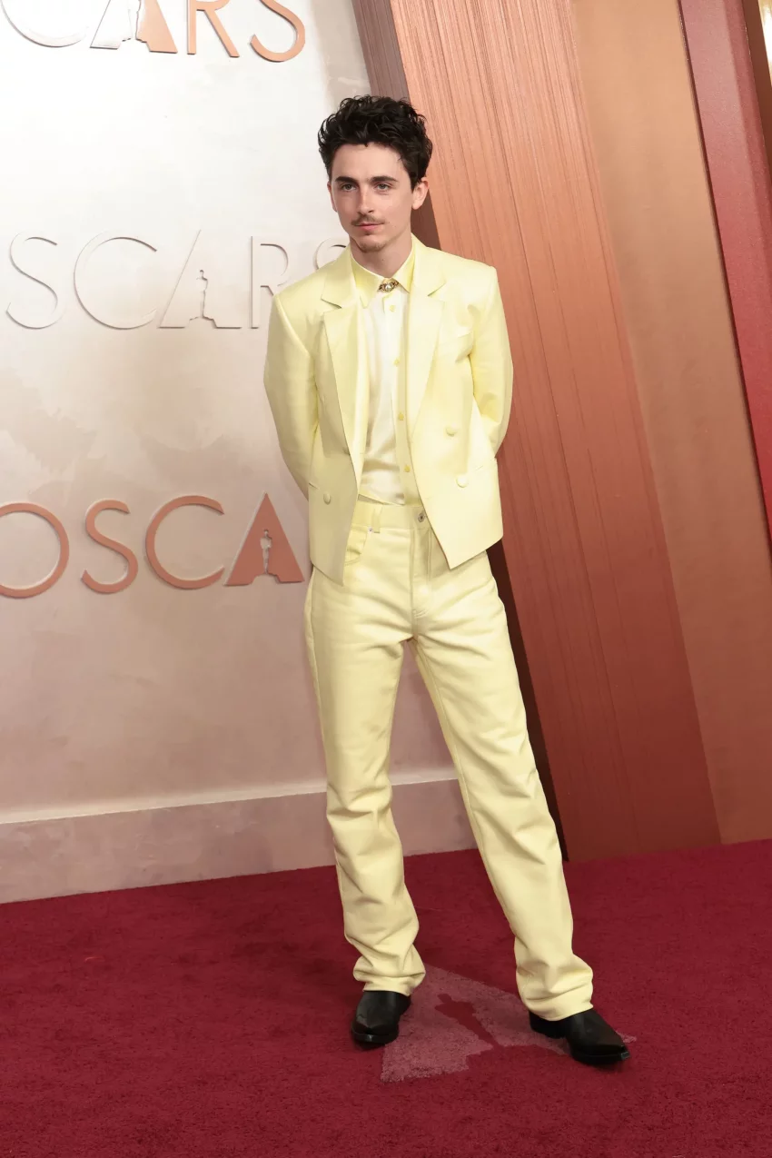 Тимоти пришёл в жёлтом костюме бренда Givenchy. На дорожке он появился без своей возлюбленной, вместо неё Шаламе сопровождала мать — Николь Флендер. Однако позже Кайли присоединилась к нему в зрительном зале. 27-летняя Кайли Дженнер выбрала для мероприятия чёрное платье на бретельках бренда Miu Miu. Позже пара поцеловалась на глазах у публики.