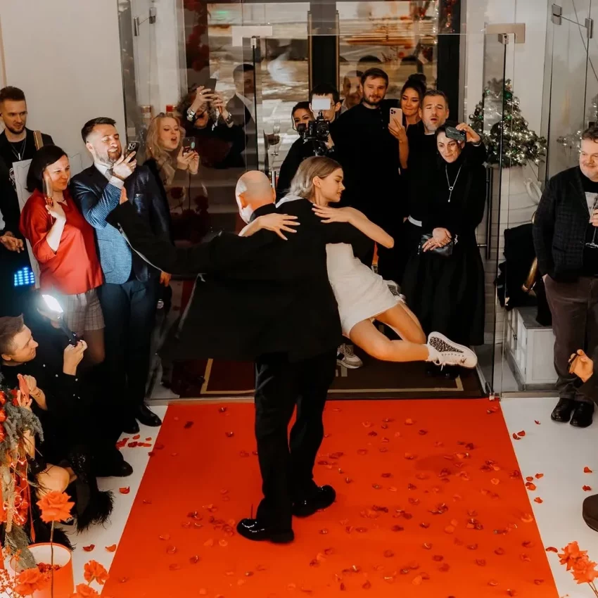 На снимках они с Горобцом предстали в классических свадебных нарядах, при этом актриса отказалась от каблуков, предпочтя им кеды с анималистическим принтом. Молодожёнам вынесли многоярусный торт, невесту поздравили её мама и многочисленные гости.
