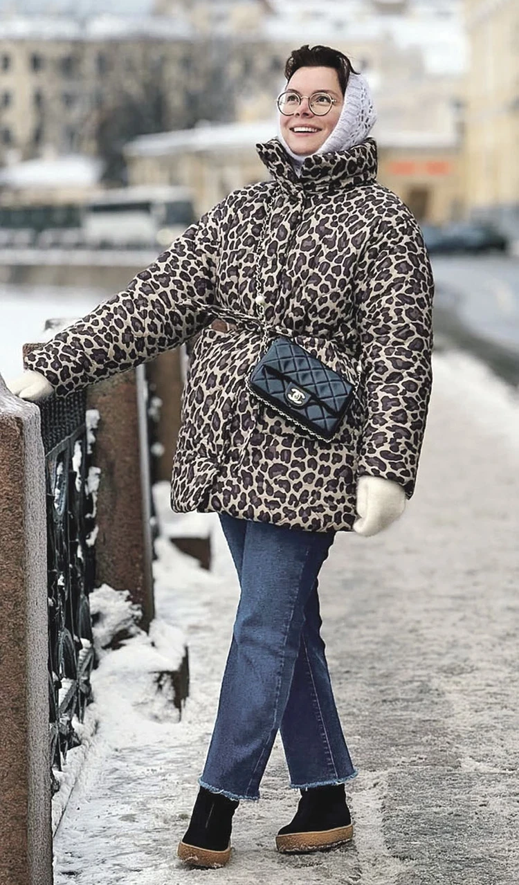 - Думаю, когда Коко Шанель радовалась, что ее вещи «вышли» на улицы, она и представить себе не могла, что ее элегантные, ставшие мировой классикой сумки будут миксовать с вызывающим леопардовым принтом. Сумка такая стоит немалых денег - от 500 тысяч рублей. Татьяна забыла о главном модном правиле: в образе должен быть один яркий акцент. В данном случае можно было сделать таким акцентом леопардовый пуховик и поснимать все «рюши и побрякуши». Ну не сочетается никак леопардовый пуховик с детским вязаным капором, варежками и люксовой сумкой.Общая стоимость образа - 700 - 800 тысяч рублей.