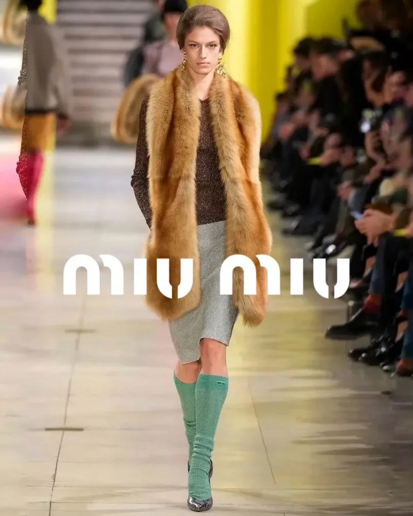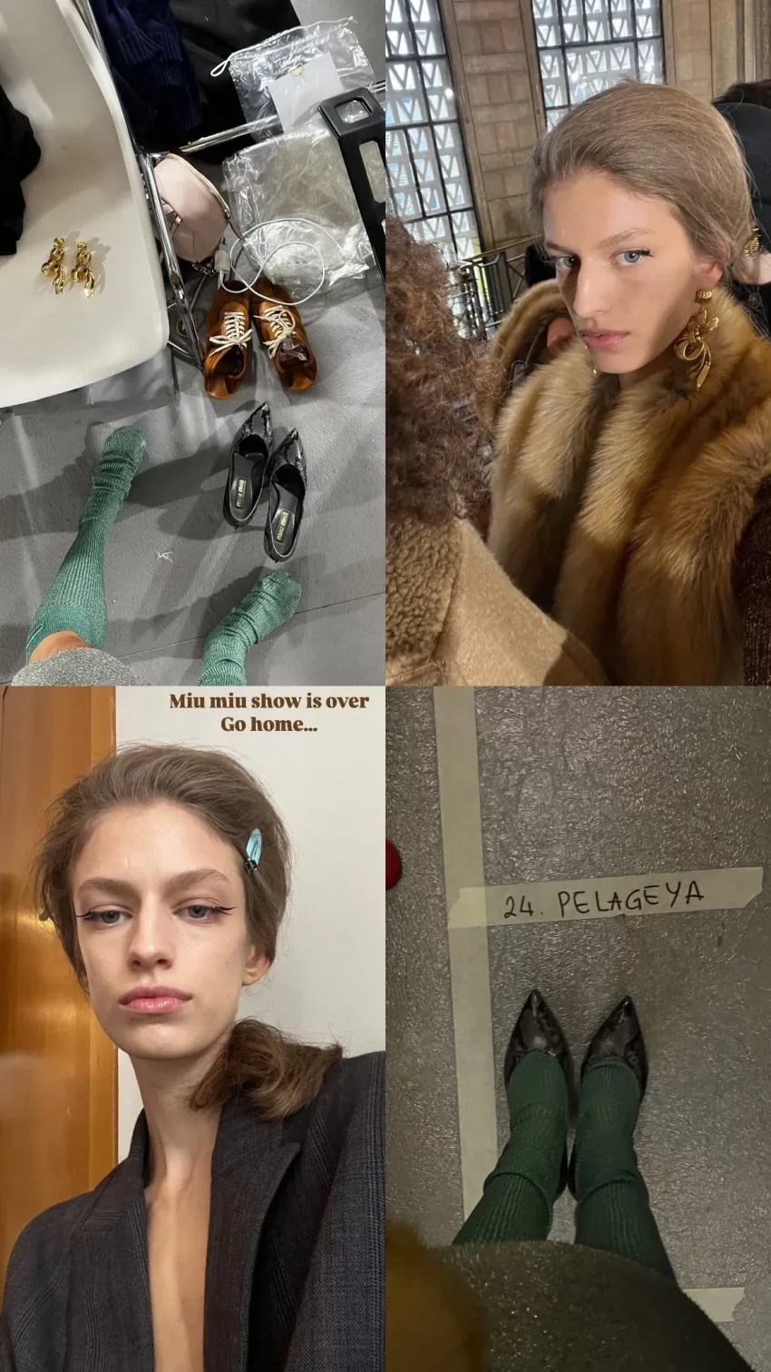 Пелагея Нецветаева-Долгалёва (настоящее имя — Полина. — Прим. ред.) вновь приняла участие в показах на Неделе моды в Париже. В прошлом году 20-летняя балерина уже стала одной из самых востребованных российских моделей на этом мероприятии, а в этом сезоне представила коллекцию Miu Miu. На показе модного дома она дефилировала в коричневом лонгсливе с люрексом, блестящей юбке миди, зелёных гольфах, туфлях-лодочках на каблуках и меховом боа.