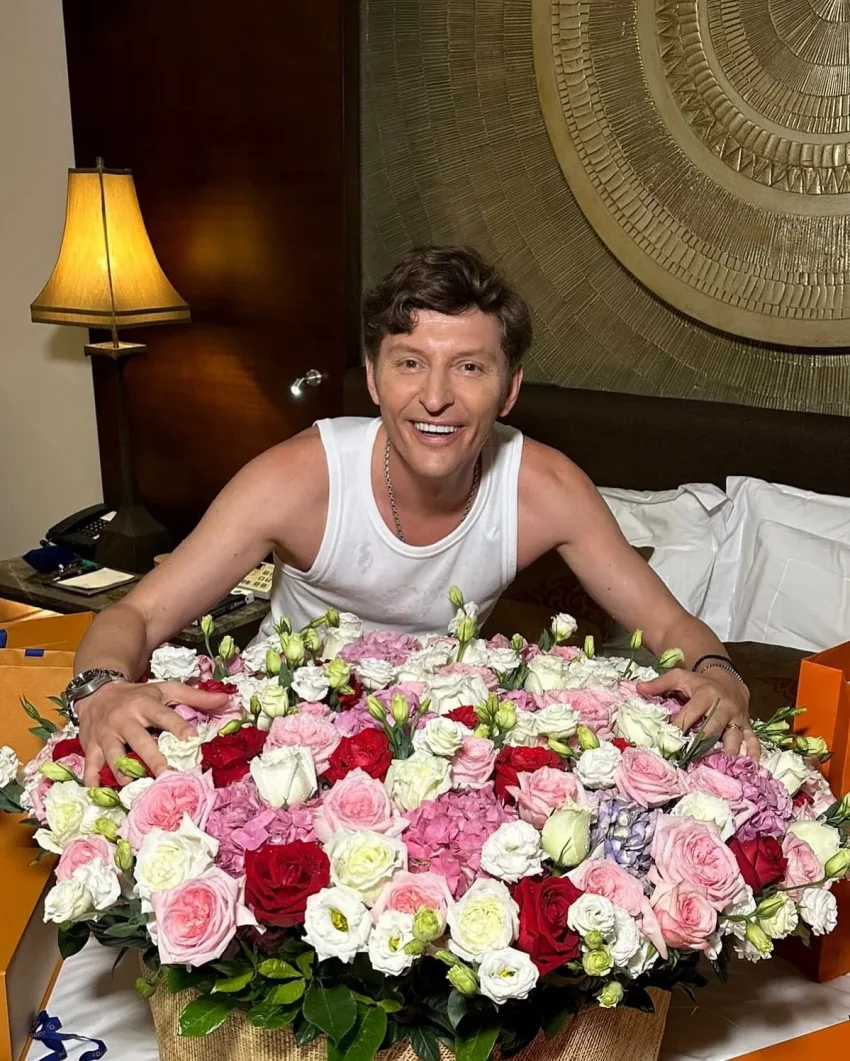 В своём инстаграме* Утяшева опубликовала совместные фото с мужем. На них она обнимается с ним, а также позирует рядом с большим букетом роз и пакетами с подарками.