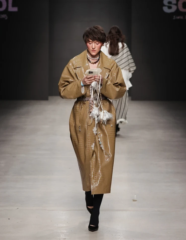 Интересная и воздушная коллекция получилась у основательницы бренда SOL Ольги Селивановой (Москва). Главным материалом Fleur épanouie («Распустившийся цветок») стало кружево, которое украсило платья, юбки и даже обувь. Впрочем, присутствовали образы и с акцентными корсетами, юбками из денима и тренчами из лаковой кожи