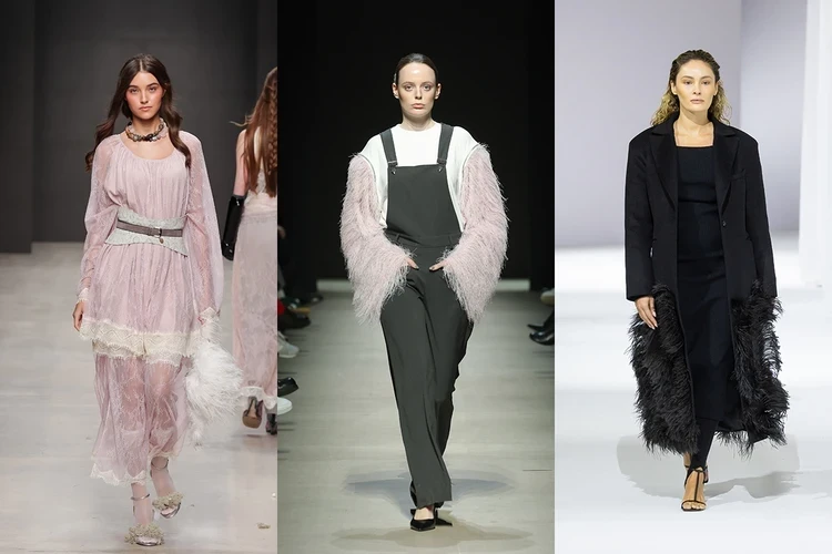 Cosarêve, Yana Besfamilnaya, Rogov. Фото: пиар Московской недели модыАктуальны жакеты, тренчи и пальто с увеличенной линией плеч. При этом, чем фактурнее плечи, тем лучше. Однако, не надо уходить в полный оверсайз. Объемный верх лучше балансировать более облегающим низом. В идеале выделять талию с помощью ремня или, например, платка.