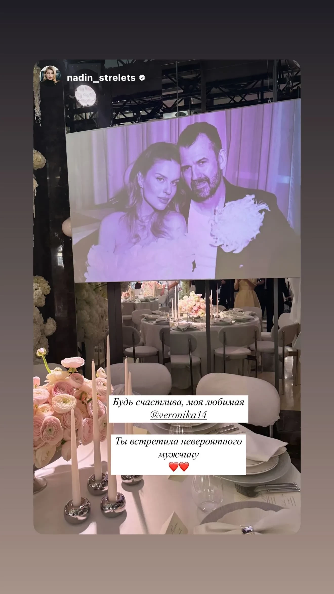 Избранником Вероники стал партнёр юридической фирмы Константин Крутильников. В ЗАГС пара сходила ещё несколько месяцев назад, рассказала в своём телеграм-канале присутствовавшая на торжестве Ксения Соловьёва.