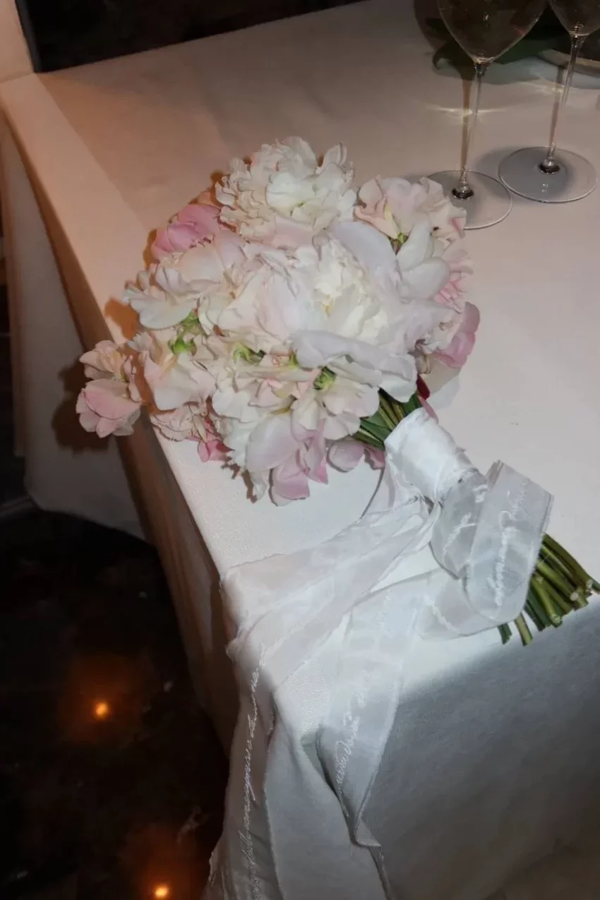 https://t.me/spletnik2006/27322К гостям, которые в качестве пригласительных получили шоколад ручной работы, невеста вышла в классическом белоснежном платье Valentin Yudashkin Couture и с букетом, перевязанным лентами с пожеланиями от матерей невесты и жениха. По ходу вечера Степанова примерила ещё два образа. В качестве подарков присутствовавшие на торжестве получили свечи с особым ароматом свадьбы, которые залили в фарфоровые пиалы со снимками из свадебной фотосессии.