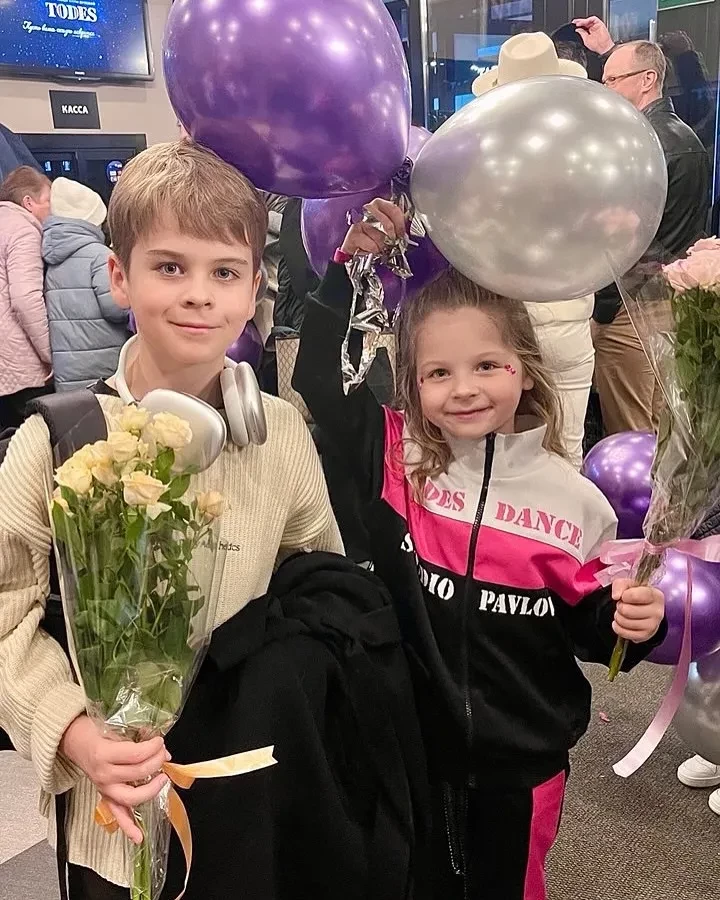 Дети Сергея Лазарева выступили в шоу танцевального коллектива Аллы Духовой "Тодес". 10-летний Никита и шестилетняя Анна исполнили танцы в групповых номерах.