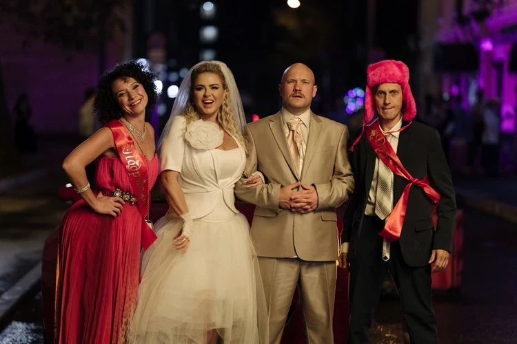 - Горько-горько, сладко с тобой, Счастье не спрятать под фатой…, - отвечает ему фигуристая красотка Анна, беззаботно порхая в свадебном платье.