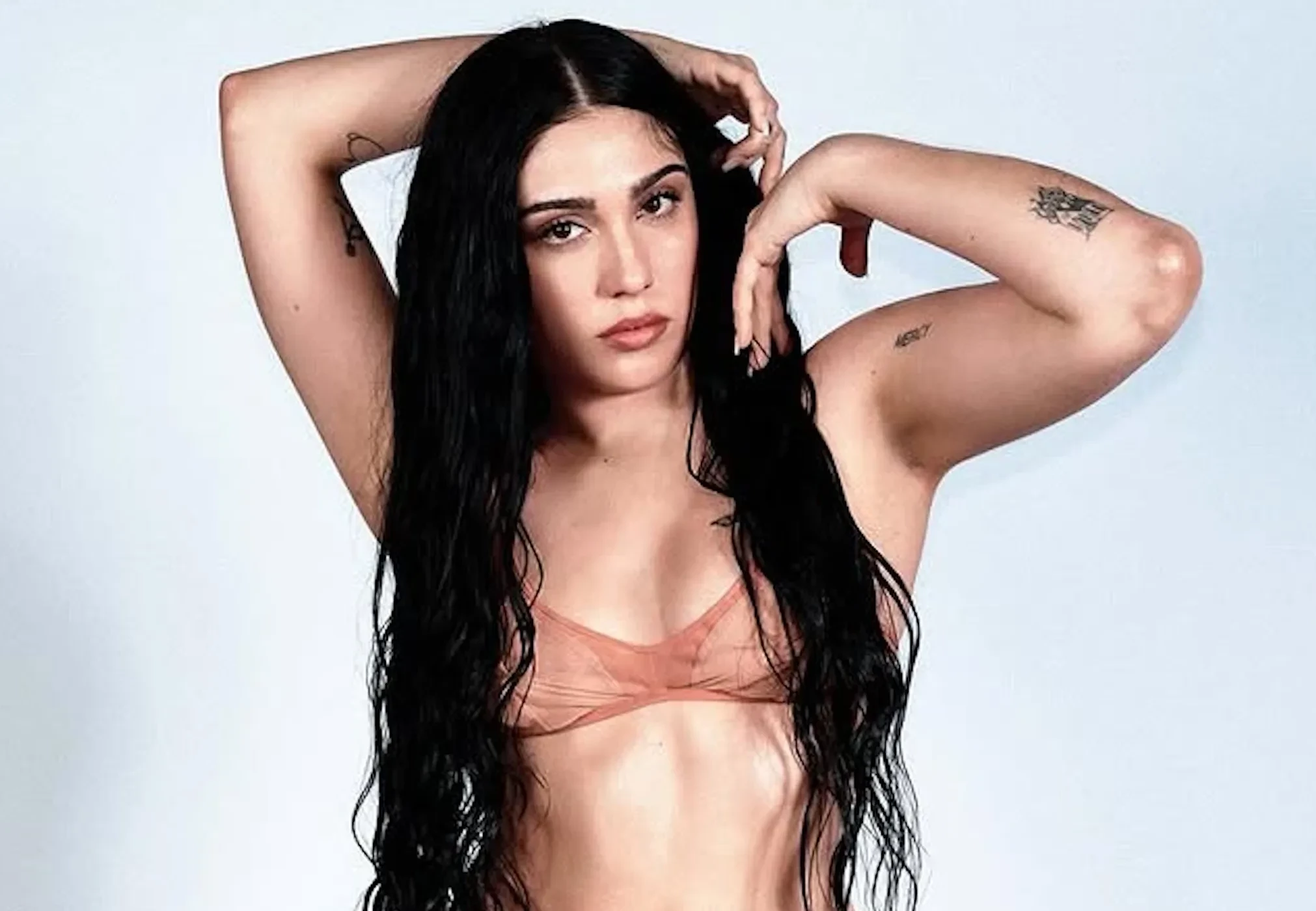 Лурдес Леон снялась в фотосессии в прозрачном платье и нижнем белье