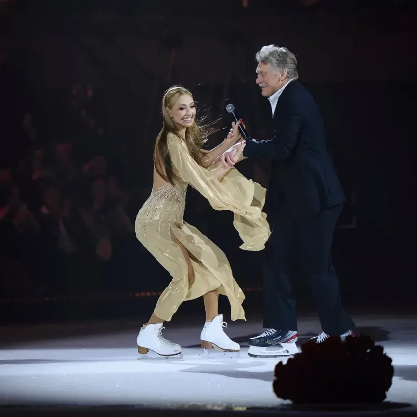 На днях олимпийская чемпионка в танцах на льду Татьяна Навка отмечала 50-летний юбилей: в своём новом ледовом шоу-театре Navka Arena в Москве она организовала представление с участием фигуристов. В какой-то момент на лёд, к удивлению зрителей, вышел и 57-летний Песков: с букетом красных роз он исполнил под песню "А он мне нравится" небольшой танец с Навкой и признался ей в любви.