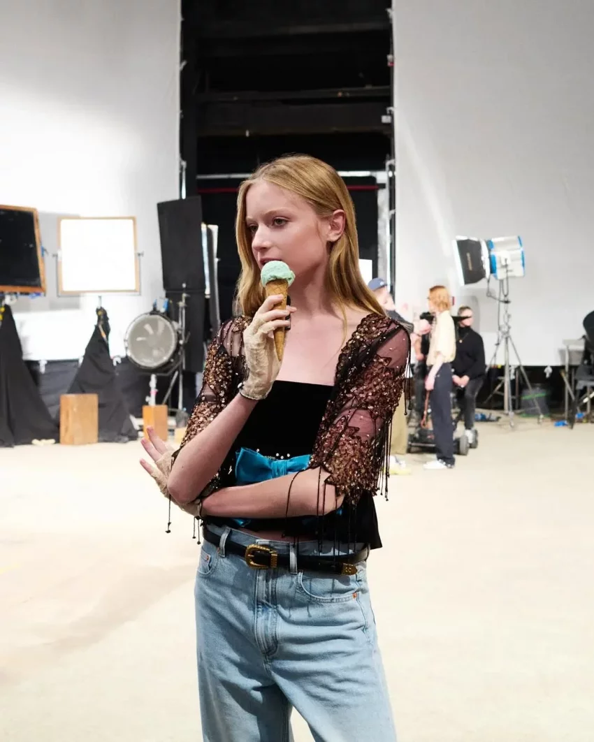 Младший сын Наоми Уоттс, который недавно дебютировал на подиуме Valentino, снялся в рекламной кампании бренда. Для съёмки 16-летний Кай надел чёрный топ с баской, прозрачными рукавами и синим бантом на талии, светлые джинсы, прозрачные перчатки и чёрные туфли на каблуках. В своём инстаграме* он также опубликовал кадры с бэкстейджа, на одном из которых позирует с креативным директором бренда Алессандро Микеле.