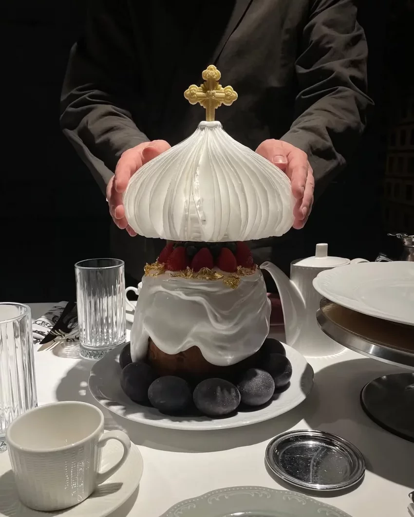 Филипп КиркоровКулич от Симачёва с трендовой начинкой "дубайский шоколад" из фисташковой пасты украшен ягодами, кремом и бумажным "куполом" с крестом. Цена на изделие стартовала с 15 тысяч рублей, а спустя пару дней выросла до 25 тысяч. Денис заявил, что подорожание связано с ажиотажем. После того как Симачёв презентовал авторский десерт Филиппу Киркорову, его стоимость выросла ещё в четыре раза.