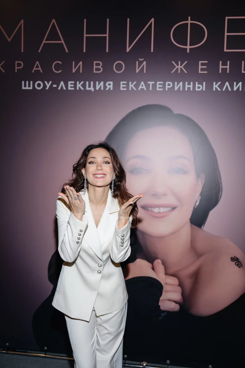 Климова опубликовала кадры со своей шоу-лекции "Манифест красивой женщины". На мероприятии она появилась в белом брючном костюме российского дизайнера с естественным макияжем и распущенными волосами. "Потрясающе красивая", "Екатерина, вы просто богиня", "Ну, красотка", "Роскошная", — пишут её подписчики.