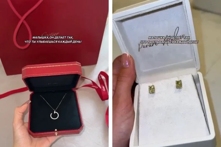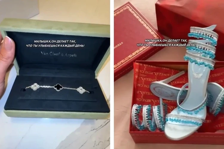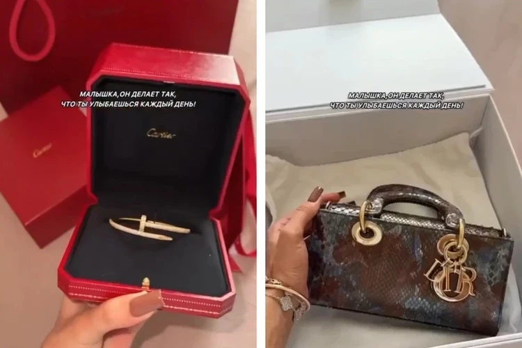 Также Карнавал получила от поклонника кулон из желтого золота от CARTIER почти за миллион рублей, кольцо и серьги с бриллиантами. Среди подарков есть и сандалии от René Caovilla Chandelier, приблизительно за 150 тысяч рублей, и сумочка от Dior за 800 тысяч рублей. В комментариях под роликом подписчики Вали гадают, кто может дарить настолько дорогие подарки.