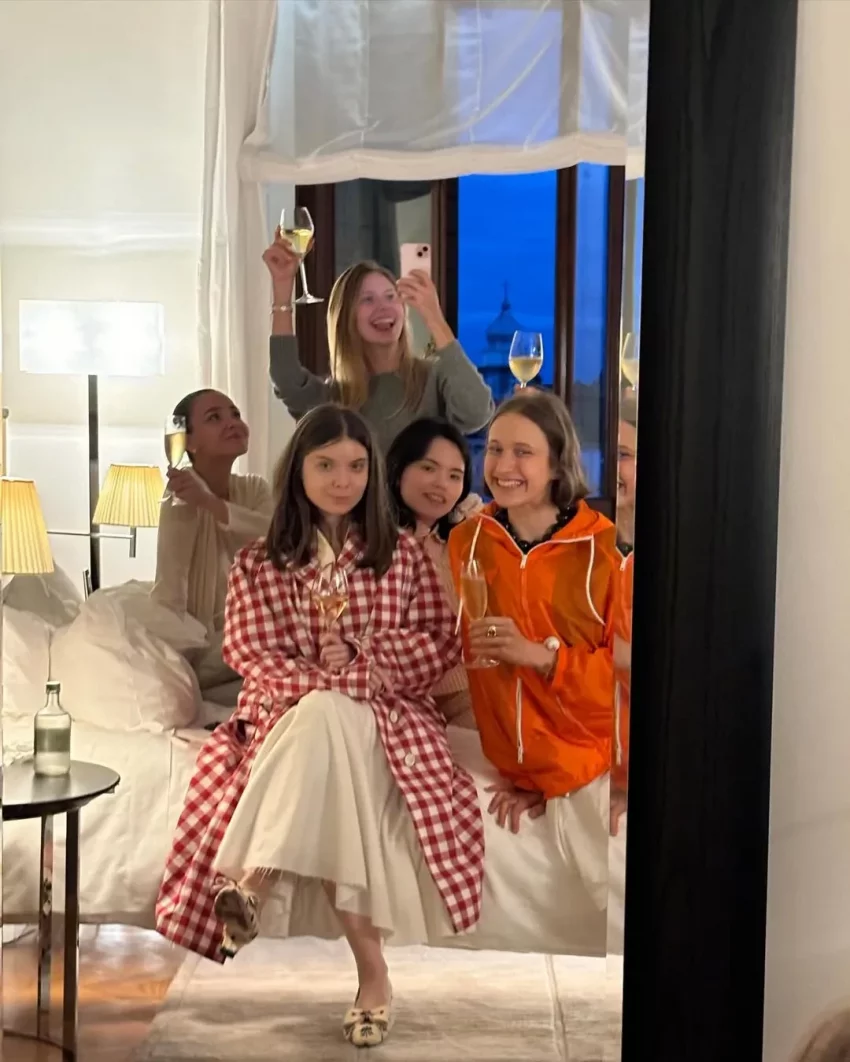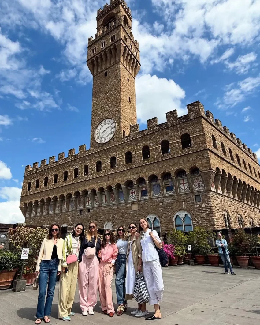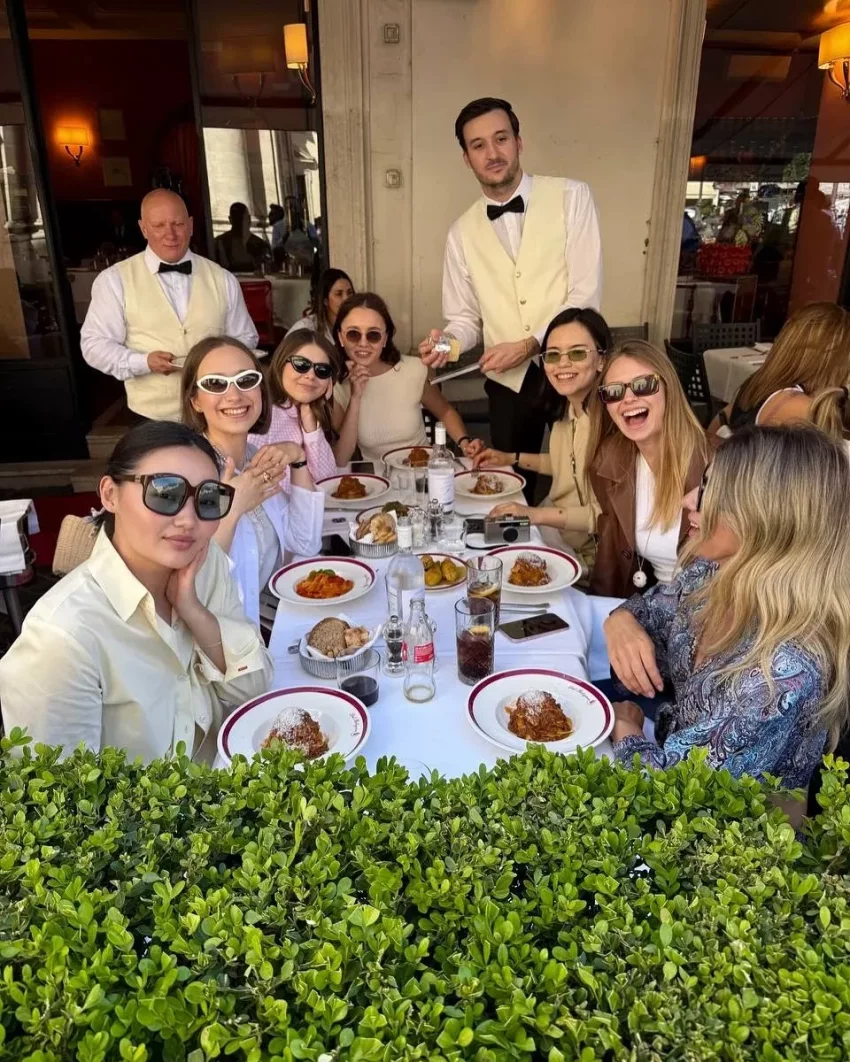 Соня Кромова, Лили Григалашвили, Есоль Ким, Ксения Китаева, Полина ЗеленоваЖурналистка назвала эту поездку одной из "самых красивых и весёлых": "Если бы вы знали, сколько раз в жизни я говорила: "Это была моя лучшая Италия!". И сейчас скажу это снова. Римско-флорентийские каникулы по случаю дня рождения Ксении — это было легендарно".