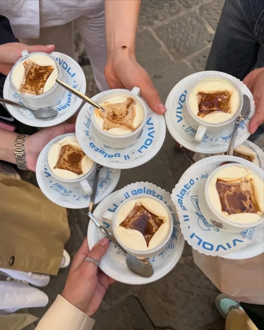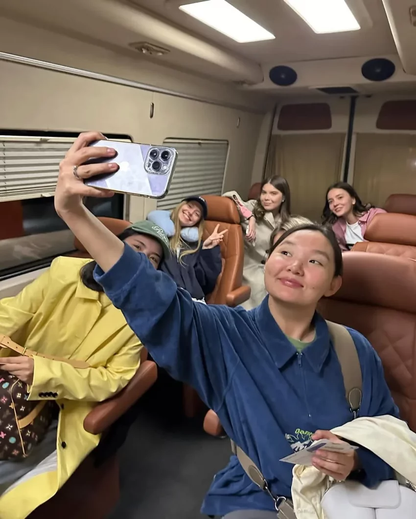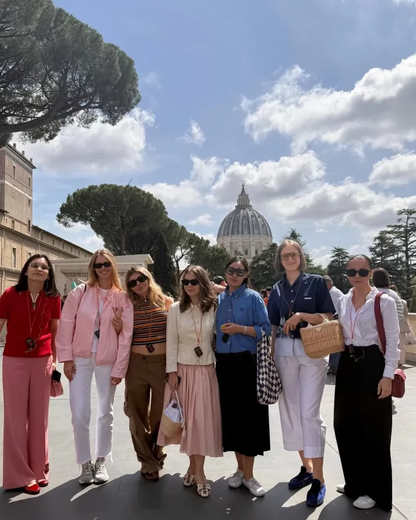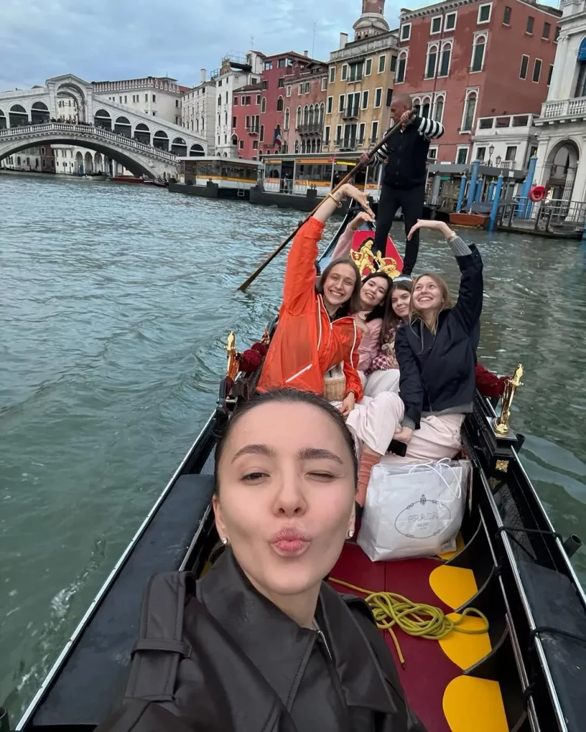 Соня Кромова, Лили Григалашвили, Есоль Ким, Ксения Китаева, Полина ЗеленоваЖурналистка назвала эту поездку одной из "самых красивых и весёлых": "Если бы вы знали, сколько раз в жизни я говорила: "Это была моя лучшая Италия!". И сейчас скажу это снова. Римско-флорентийские каникулы по случаю дня рождения Ксении — это было легендарно".