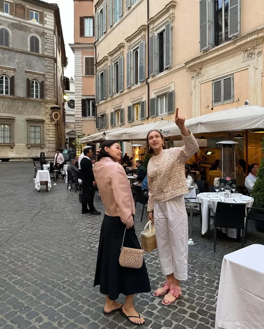 Подруги Ксении получили приглашения в праздничную поездку в виде брендированных коробок с пиццей с открытками из "Римских каникул". В Италии компания посетила выставки Караваджо в палаццо Барберини и Трейси Эмин в палаццо Строцци, сходили на экскурсию по Ватикану с посещением Сикстинской капеллы, провели день в галерее Уффици во Флоренции. "И всё это бесшовно соединено красивыми обедами, коктейлями и ужинами в знаковых локациях Рима и Флоренции", — рассказала Надежда Стрелец.