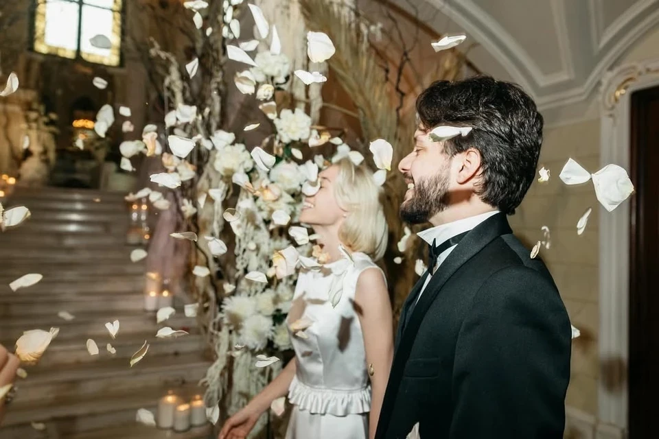 - Свадьба вдохновлена стилем ревущих 1920-х. Динамичность развития этой эпохи отражается в каждой детали свадьбы: в музыке, еде и декоре. На один день особняк Мясникова вернулся в прошлое, в котором тесно переплетаются стиль ар-деко и джаз. Концепцию оформления торжества претворили в жизнь декораторы из Петербурга. Обилие жемчужин, кристаллов, тонкой материи - отражение урбанистического направления эпохи, которое сочеталось с антикварным серебром, канделябрами и золотом парадных залов. Романтическую атмосферу праздника создали живые цветы, - поделилась с «КП-Петербург» организатор свадьбы Екатерина Сафронова.