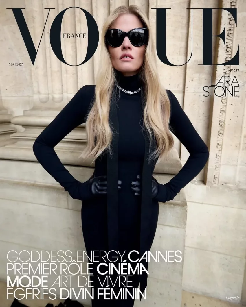 Наташа Поли для Vogue (Франция)Также для номера, который посвящён модным иконам, известному фэшн-фотографу Марио Соррентино позировали ещё три топ-модели нулевых: 41-летняя Лара Стоун, 36-летняя Джоан Смоллс и 37-летняя Лю Вэнь.