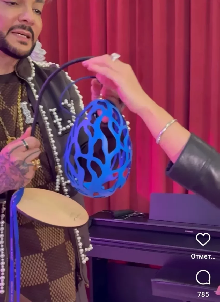 Тем не менее, на торжестве не обошлось без салюта и довольно экстравагантного торта, украшенного фигуркой в виде самого именинника с прикрепленной к его спине пиротехникой — это отсылка к недавнему происшествию на концерте Филиппа, во время которого он обжег руку.