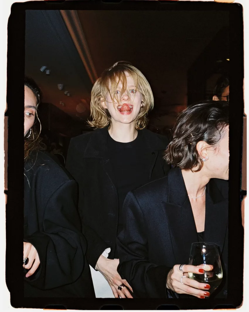 Стася МилославскаяДля праздничного вечера Стася выбрала чёрное мини-платье, накинув сверху оверсайз-пиджак с декоративными рюшами, имитирующими трендовую юбку-баллон. Образ она дополнила чёрными лоферами, а волосы уложила в "мокром" стиле.