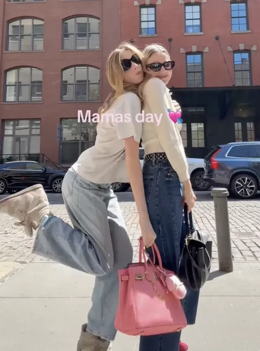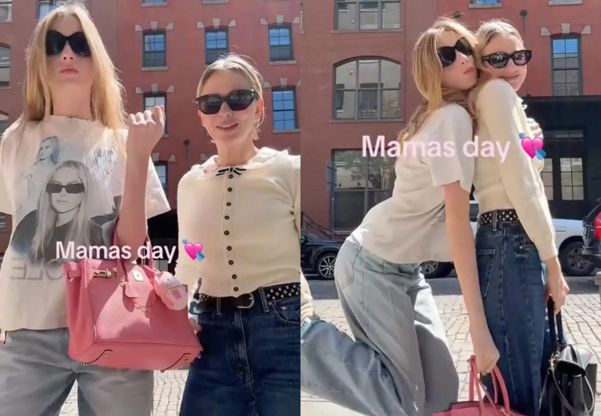 Младший ребёнок актрисы от экс-супруга Лива Шрайбера опубликовал в тиктоке видео со звёздной матерью, снятое на одной из улиц города. Наоми надела на прогулку джинсы с красными балетками и белый кардиган, дополнив образ сумкой Balenciaga. Сын звезды, который недавно начал модельную карьеру, позирует в футболке Balenciaga с изображением Николь Кидман, кроссовках на танкетке Isabel Marant, которые были популярны в 2010-х, а в руках держит розовую сумку Hermes Birkin.