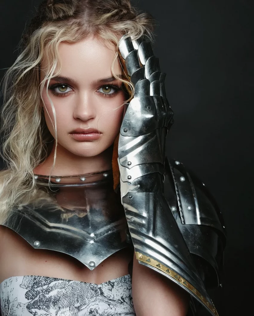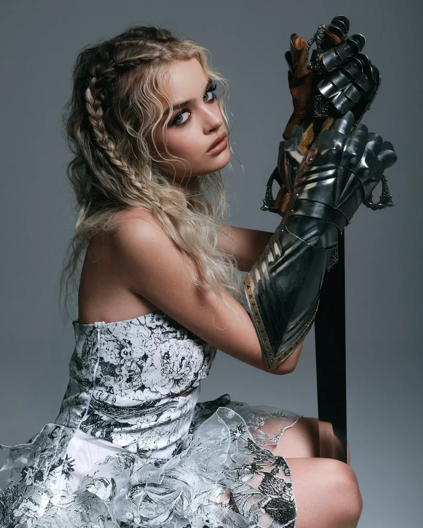 "В каждой девочке живёт рыцарь". 18-летняя жена режиссёра Марка Горобца снялась в доспехах на фоне критики пары