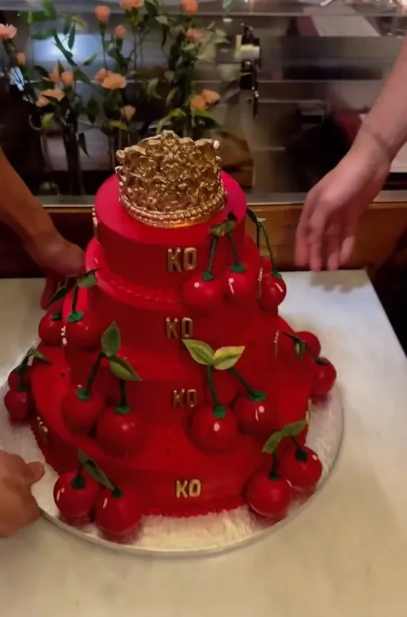 На торжестве присутствовал муж Орбакайте, бизнесмен Михаил Земцов. Гостям вынесли торт, украшенный ягодами вишни и с "золотой" короной на вершине.
