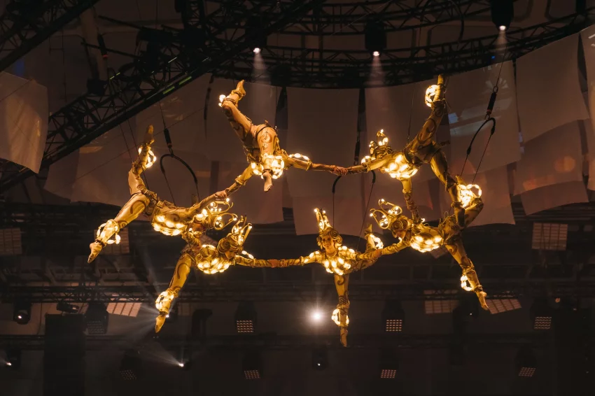 Марк Горобец с женой и дочерьюМаша Фёдорова с дочерьюКатя МухинаЕвгения МиловаИрина БезруковаСветлана ХоркинаАлексей ЖидковскийЕкатерина ВолковаДарья Екамасова с дочерьюМария ЯнковскаяСергей Харченко с детьмиКатя ЛельИрина ЧайковскаяВлад Соколовский и Ангелина Суркова с сыномМария ПогребнякВиктория Синицина и Никита КацалаповШоу "Сны Пушкина"Шоу "Сны Пушкина""Сны Пушкина" — первое в России цирковое представление без участия животных, выполненное в формате нового цирка. В постановке сочетаются элементы цирка, театра, музыки и мультимедиа, с акцентом на переосмысление традиционных жанров. В шоу участвуют более 60 артистов, а основой сюжета служат сказки Александра Пушкина. Зрительская премьера состоится 29 мая.