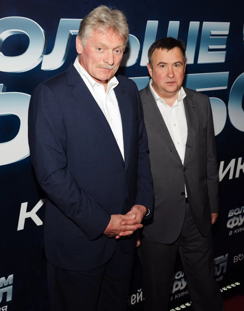 Дмитрий Песков, Алексей Воробьёв и Аделина Сотникова на премьере фильма "Больше чем футбол"