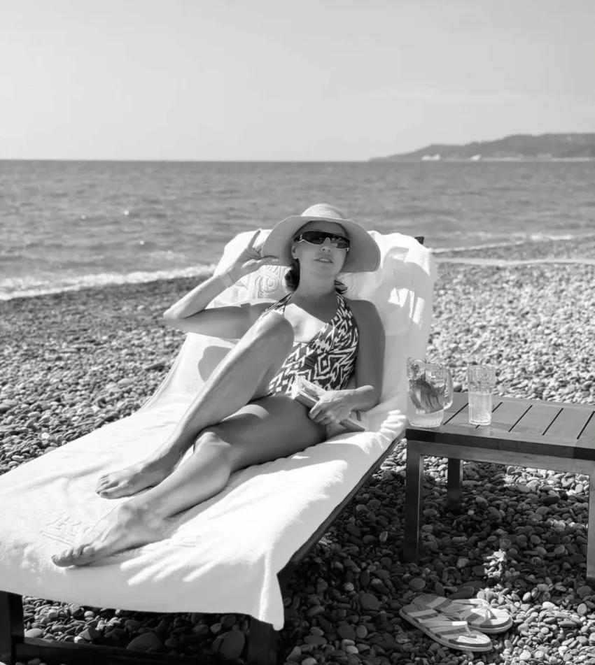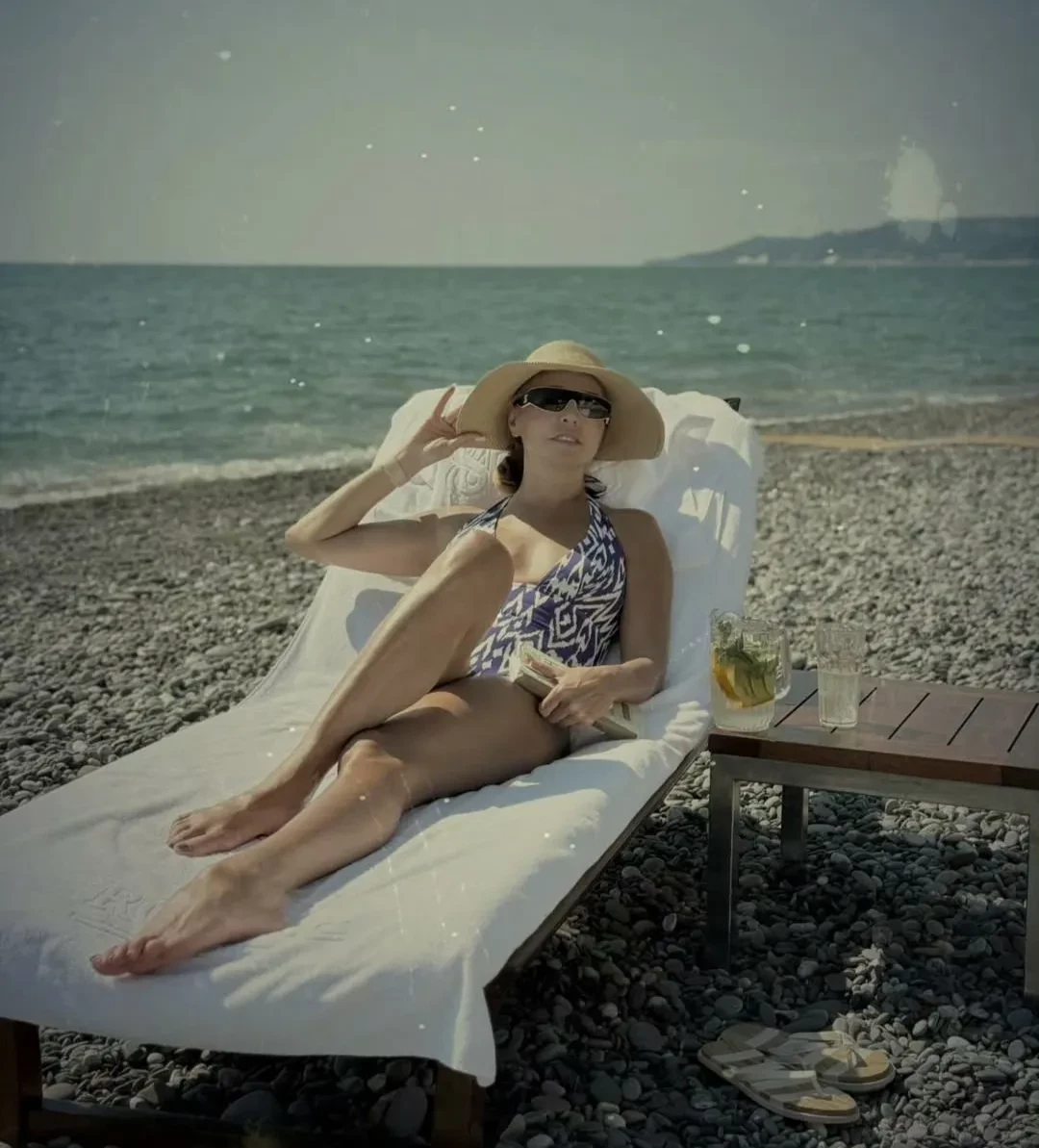 На кадрах можно увидеть, как Татьяна загорает на пляже в купальнике и позирует перед камерой на фоне декоративных растений, украшающих территорию отеля.