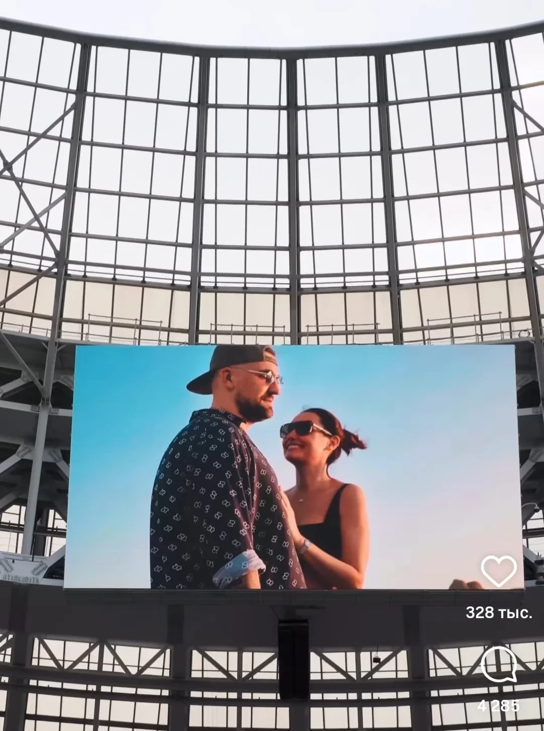 Чтобы удивить любимого, Елена сговорилась с его командой, и те притворились, что ему нужно снять приглашение на его июньские концерты в Лужниках. Однако когда Баста пришел на стадион, то увидел на большом экране поздравление от супруги, состоящее из фрагментов семейных видео. В нем Елена поблагодарила мужа за счастливый брак.
